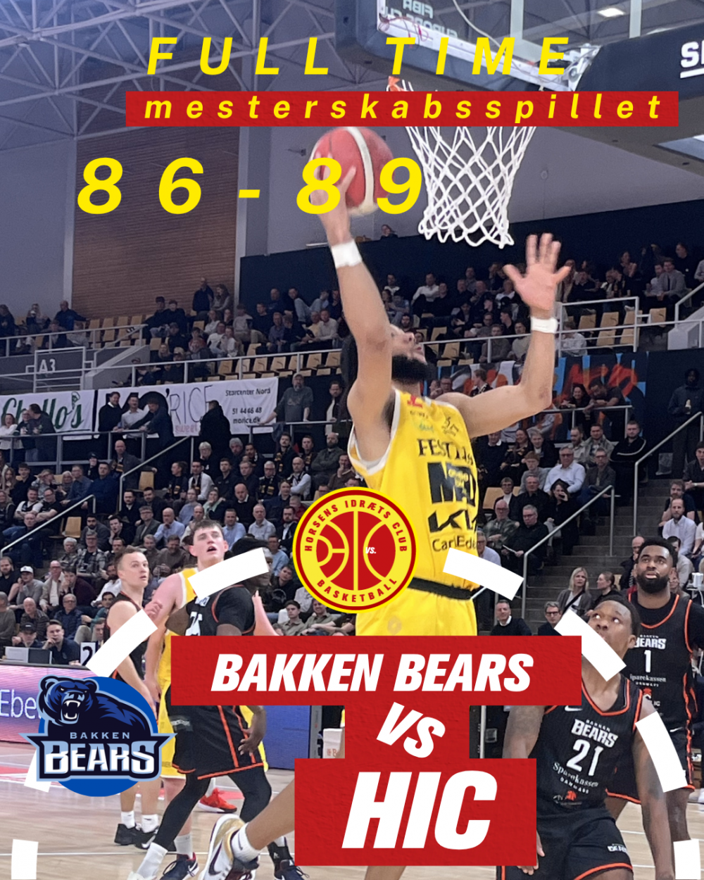 I starten bliver det tæt. Bakken lykkedes kortvarigt både med at rebounde på deres missede skud, og efterfølgende at sætte et par af de vilde. Men derfra ser vi os ikke tilbage og vi stikker stille og roligt af. Føringen er på 11 point inden Oscar Jørgensen reducerer fra distancen. Kareem Reid har haft en pause på bænken, men er tilbage i den ledende rolle under kurven. Han slutter kampen med hele 26 point og 5 rebounds og bliver HIC's bedste spiller på aftenen. Da tiden er løbet ud, har Bakken godt nok fået reduceret forspringet men vi tager sæsonens vigtigste sejr på 86-89 og skaber et forspring på fire point til Randers på femtepladsen.